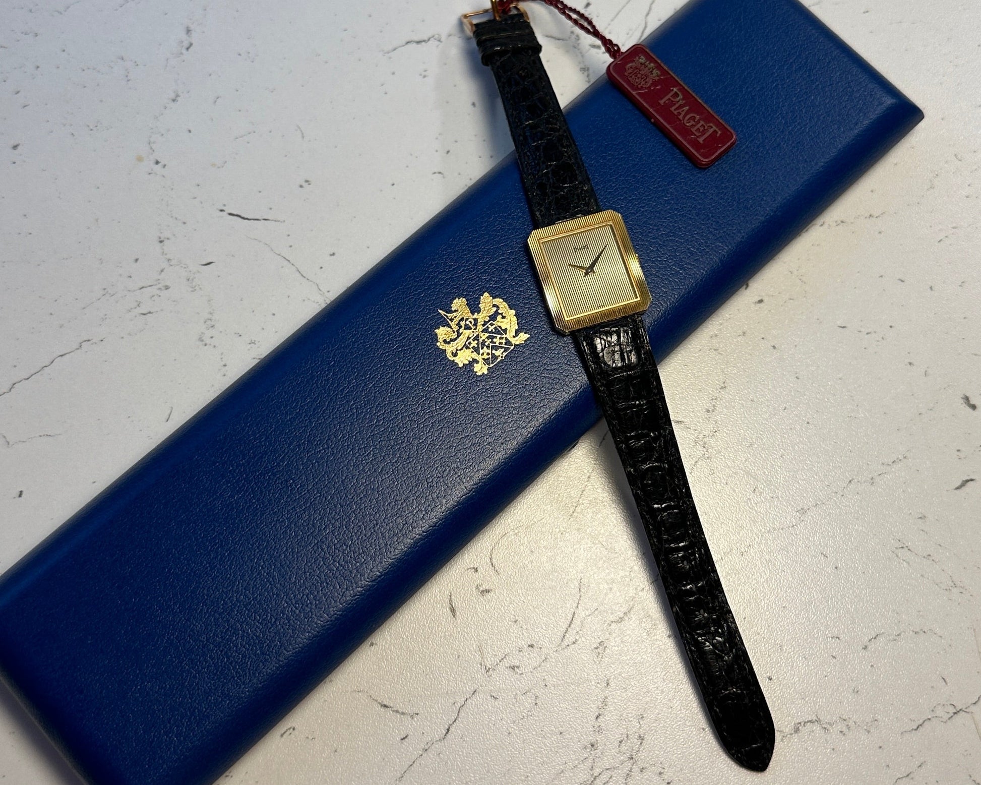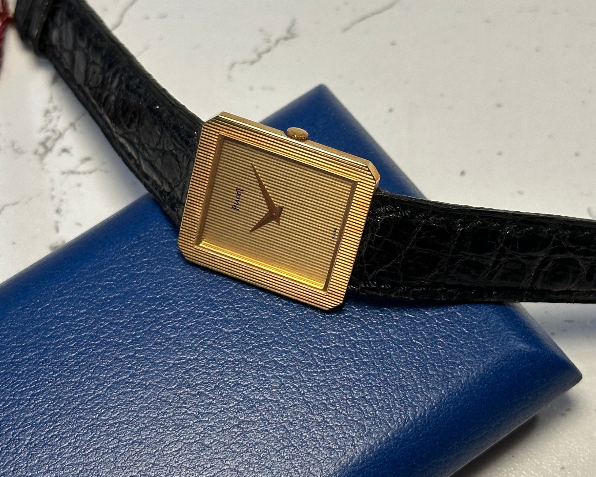 The watch comes on it's original Piaget strap and the original Piaget yellow gold buckle.